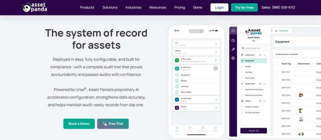 👉 Asset Panda is built for organizations that need configurability and IT ecosystem integration. Its no-code custom fields, workflows, and 20+ native integrations with tools like Microsoft Intune, Jamf Pro, and ServiceNow make it a strong choice for IT-heavy operations. The Ursa AI assistant lets administrators set up databases and automations using natural language, and the mobile app with full offline mode handles barcode scanning in the field.