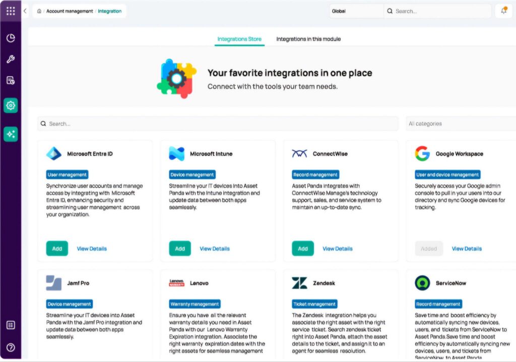 Asset Panda has invested heavily in IT ecosystem connectivity.