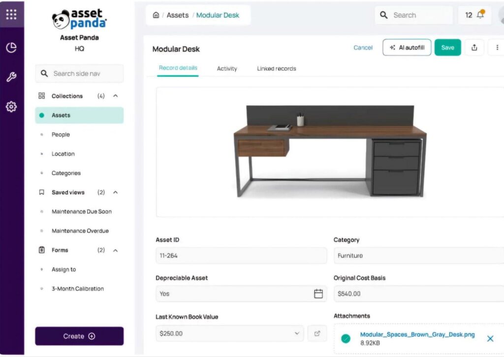 However, Asset Panda’s pricing starts at $3,000/year for just 5 users and 1,000 assets, with per-user costs that add up quickly as teams grow. And while it covers asset tracking and maintenance well, it doesn’t extend into fleet management, field services, equipment rental or comprehensive financial management of assets.
