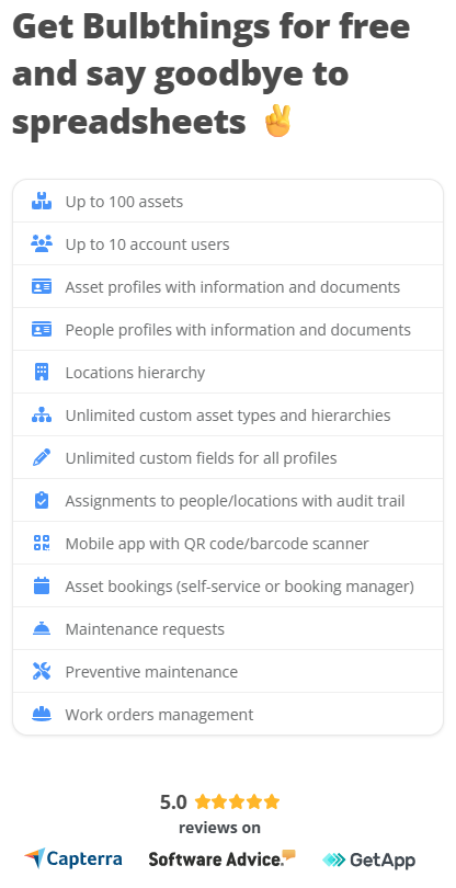 | Asset Panda | EZOfficeInventory (EZO) | Bulbthings | |