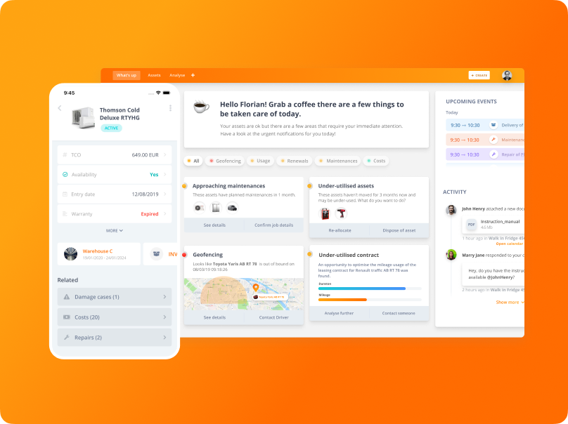 - manage asset financials – costs import, TCO analytics or invoicing automation